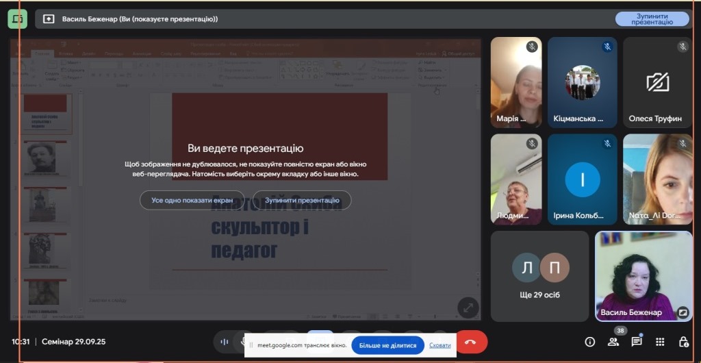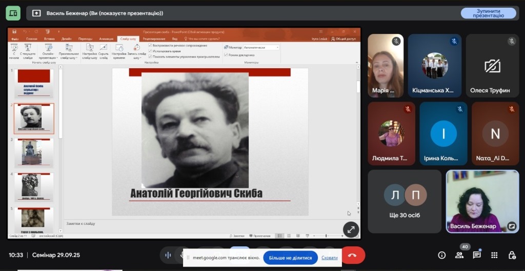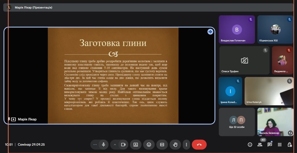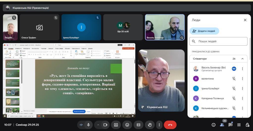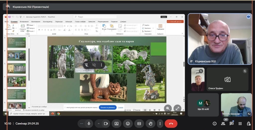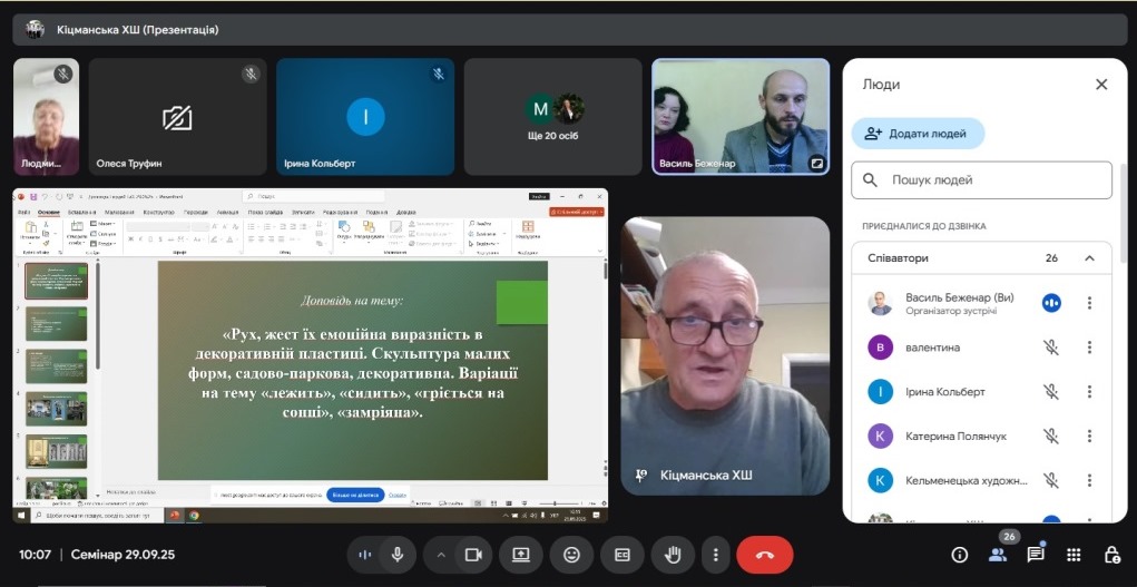 Задля підвищення якості викладання предмету «Скульптура» в мистецьких школах Чернівецької області працівники Буковинського центру культури і мистецтва у 2025–2026 навчальному році запланували низку навчально-методичних заходів для викладачів, а також виставки й конкурси для учнів. 29 вересня відбувся перший із них — онлайн-семінар «Формування знань та уявлень про об’ємну скульптуру в учнів мистецької школи». У ньому взяли участь 44 викладачі з різних шкіл області.