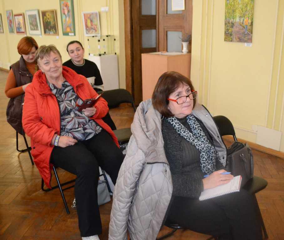 Першою виступила Ірина Кольберт, викладачка Сторожинецької художньої школи, членкиня Національної спілки майстрів народного мистецтва України з темою «Українські нагрудні прикраси». Далі слово мала Ольга Денисова, завідувачка науково-експозиційного відділу Чернівецького обласного художнього музею, членкиня Національної спілки майстрів народного мистецтва України. У доповіді «Скульптура в колекції Чернівецького обласного художнього музею» вона розповіла про унікальні твори буковинських митців, зокрема роботи Анатолія Скиби, 95-ти річчя від дня народження якого відзначається цього року. До цієї дати серед учнів мистецьких шкіл області буде проведено виставку-конкурс, присвячену пам’яті митця.