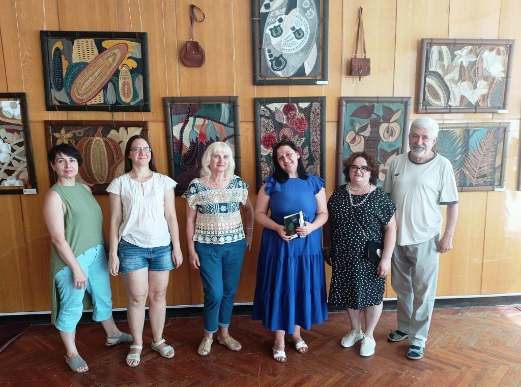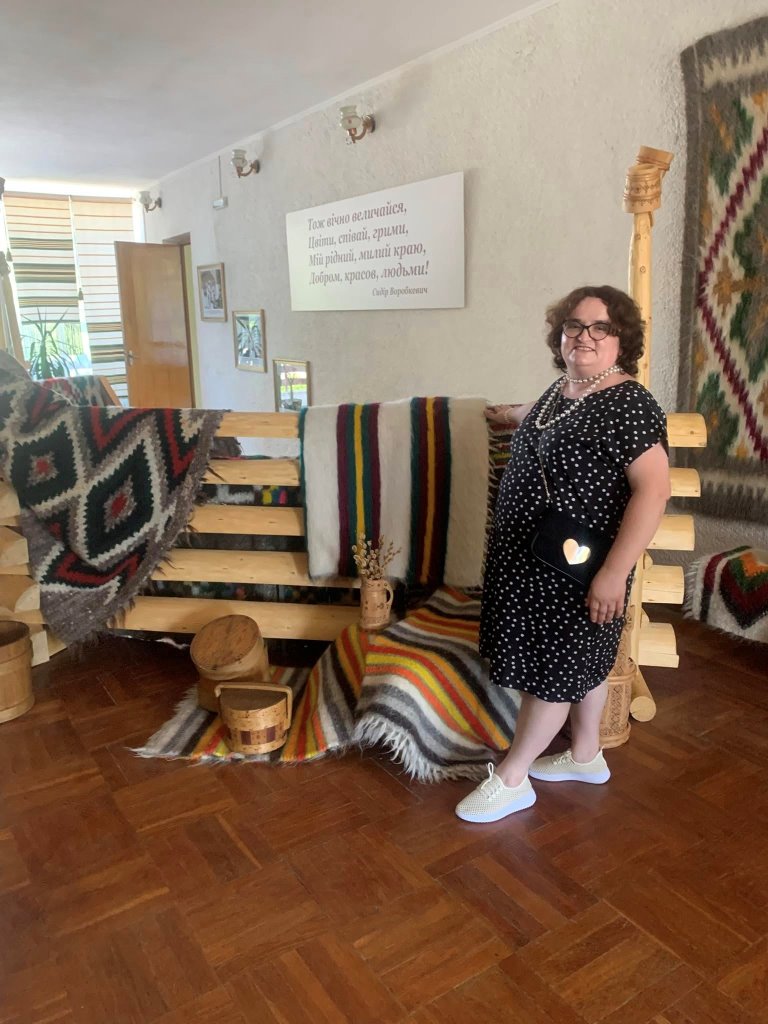 Візуальним тлом розмови і майстерним прикладом трансформації традиції стала виставка художніх виробів зі шкіри авторства Володимира Сидоренка та його учнів – студентів Львівської національної академії мистецтв, Львівського фахового коледжу декоративного та ужиткового мистецтва імені Івана Труша, а також роботи воїнів-учасників проєкту «Незламні». Друга частина студії відбувалася у новоствореному гуцульському просторі, де експонуються гуцульські (як прикарпатські, так і буковинські) ліжники і зразки традиційної боднарки.