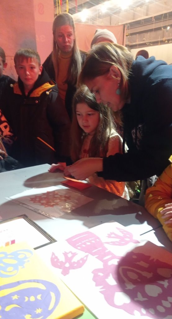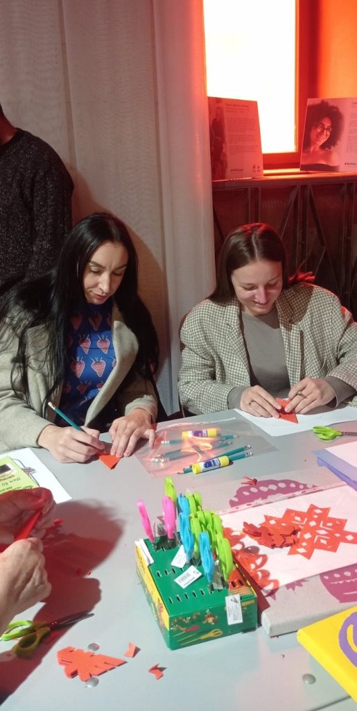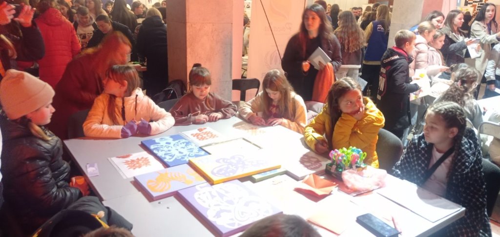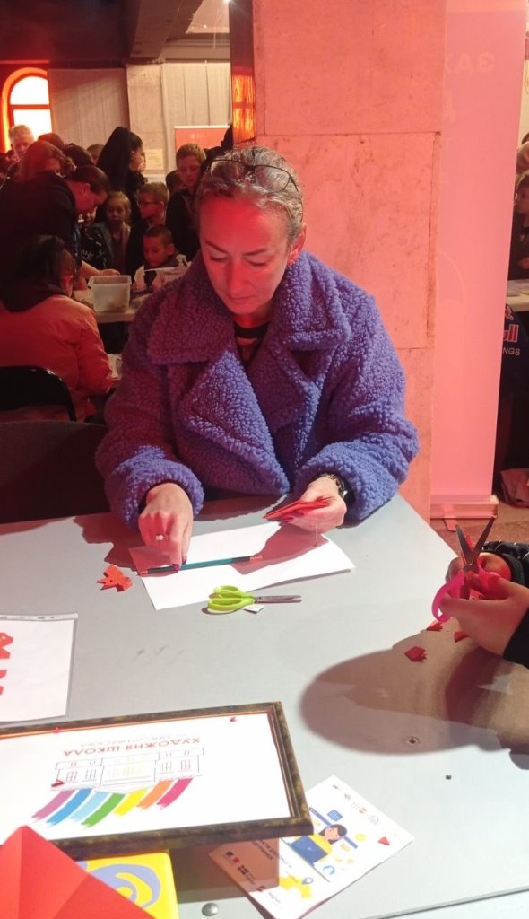 На нашій локації в кіноконцерній залі "Чернівці" було гамірно від емоцій. Понад 30 учасників виготовляли свої творчі роботи та мали можливість понести додому своїм рідним витинанки в традиційних українських зразках.