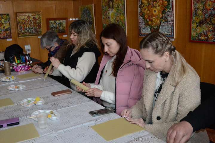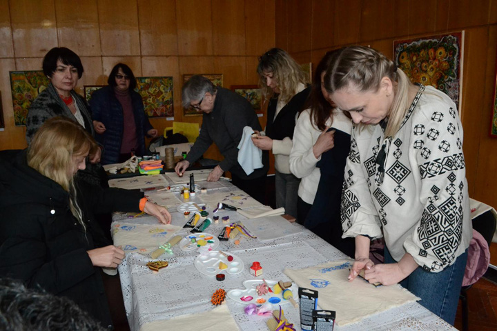 1500x0 28 квітня у Буковинському центрі культури і мистецтва відбувся майстер-клас із вибійки. Ініціаторкою передвеликодньої зустрічі виступила директорка Палацу молоді і студентів м. Херсона пані Олена Звягіна в межах меморандуму про співпрацю із Центром.