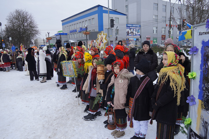 28 грудня у Хотині відбувся регіональний благодійний фестиваль щедрівок, колядок, маланок та сучасних різдвяних пісень «Коляда, коляда на Хотинщину прийшла». Цього року він проходив у рамках Всеукраїнської акції «Коляда для захисника», що об’єднує громади, школи та творчі колективи задля підтримки наших воїнів. Фестиваль розпочався різдвяно-новорічною ходою від міської ради. Учасники колективів зупинилися біля Алеї Слави Героїв Хотинської громади, де вшанували пам’ять загиблих хвилиною мовчання, поклали квіти та лампадки. Цей момент став символом вдячності тим, хто віддав своє життя за Україну.