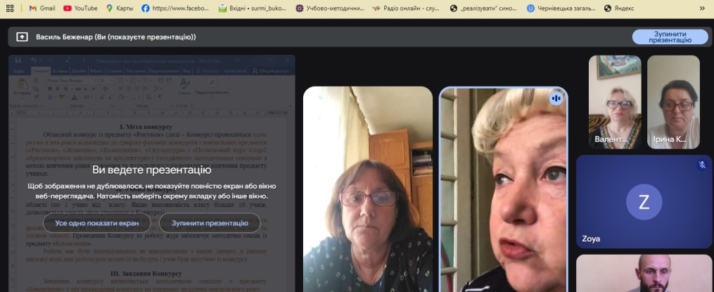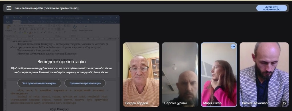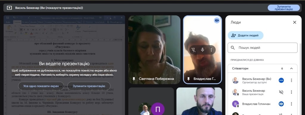 У рамках цих завдань 23 вересня в онлайн форматі відбулися п’ять засідань методичних секцій з предметів: «Рисунок», «Живопис», «Композиція», «Скульптура», «Початковий курс історії образотворчого мистецтва та архітектури».
