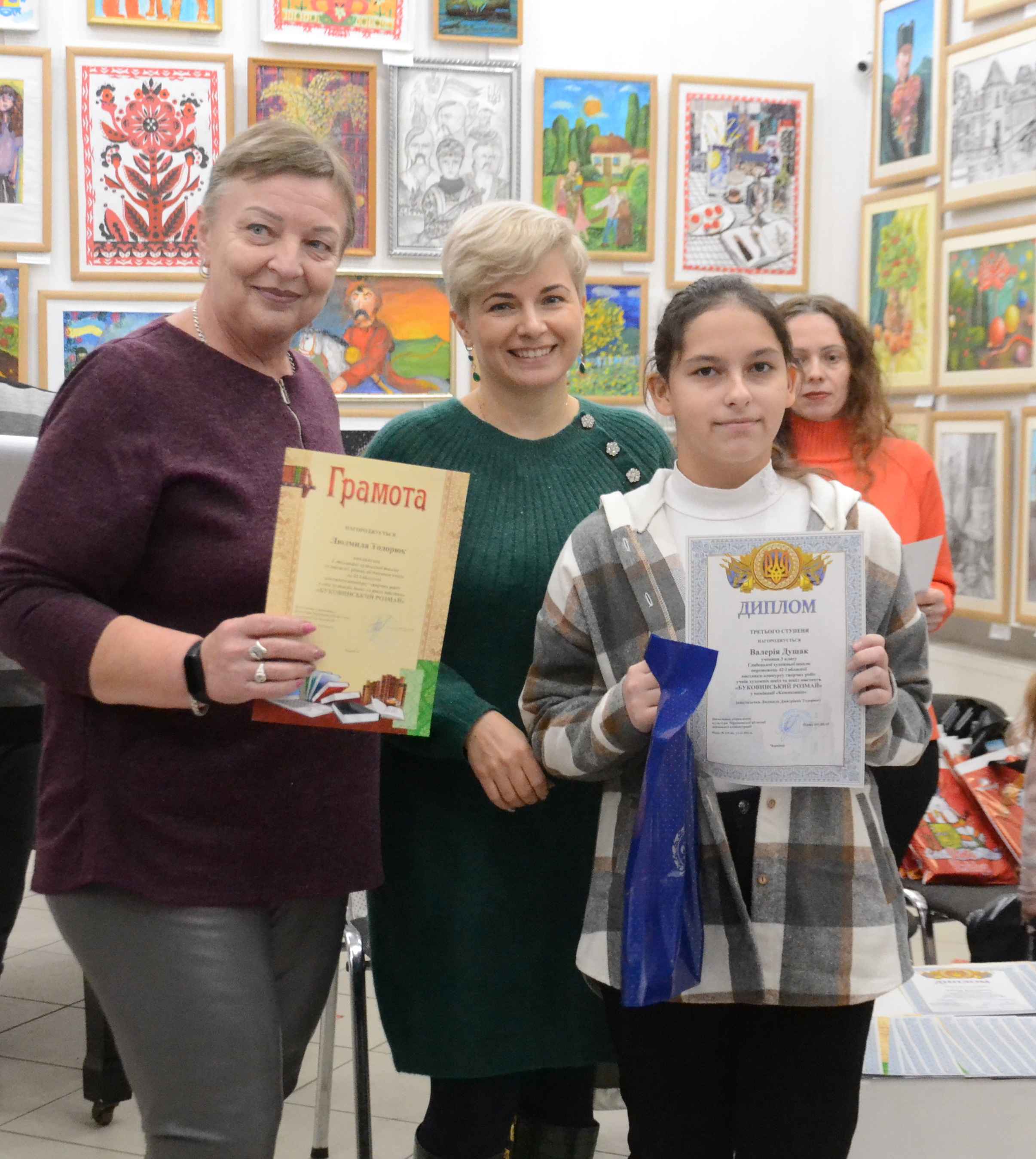 Юлія Грицку - Андрієш, заступниця начальника Чернівецької ОВА щиро привітала юних переможців та з приємністю нагородила їх дипломами і цінними подарунками. Приємно було бачити незгасаючі посмішки, як переможців, так і їхніх викладачів, адже це спільна творча праця, яка заслужено і гідно винагороджена.