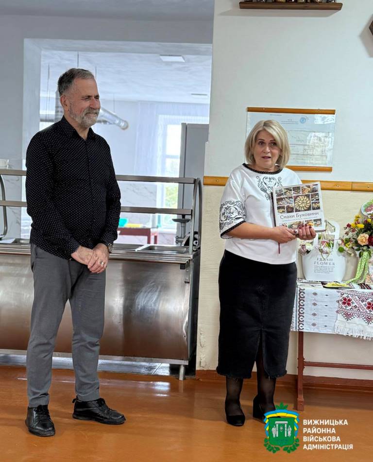 У селі Коритне Банилівської територіальної громади відбувся пізнавальний майстер-клас із приготування страви за рецептом із книги “Смаки Буковини”. Учасники готували фаршировану рибу — страву, яка здавна вважається окрасою буковинського столу.Участь у заході взяв начальник Вижницької районної військової адміністрації Сергій Чеботар, а також голова Банилівської сільської ради Василь Соломко, заслужений діяч мистецтв України Микола Шкрібляк, директори освітніх закладів громади та місцеві господині.Нагадаємо, «Смаки Буковини» - видавничий проєкт, який у форматі гастрономічного путівника показав розмаїтість буковинської кухні від Черемоша до Дністра. Керівник проєкту «Смаки Буковини» і автор однойменної книжки – директор Буковинського центру культури і мистецтва Микола Шкрібляк.