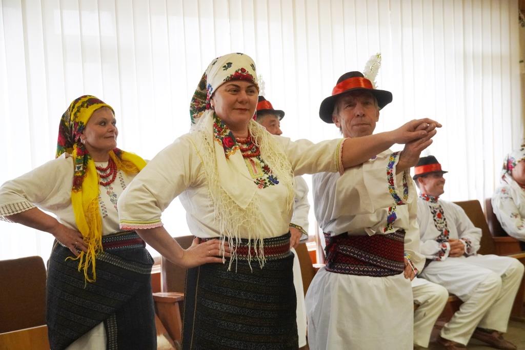 Про особливості походження та поглиблення вивчення старовинних обрядових танців "Коса", "Карапет", "Сирба", "Єленка" розповів ідейний натхненник семінару, відмінник освіти України, відомий фольклорист, етнограф, хореограф, учасник бойових дій Юрій Марко.
