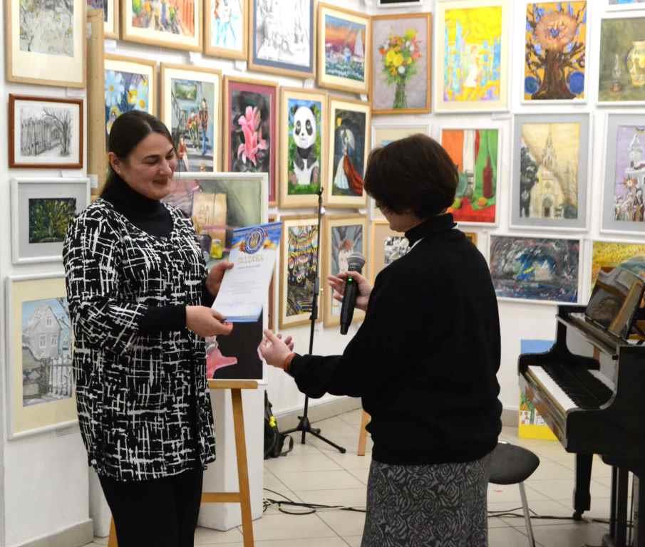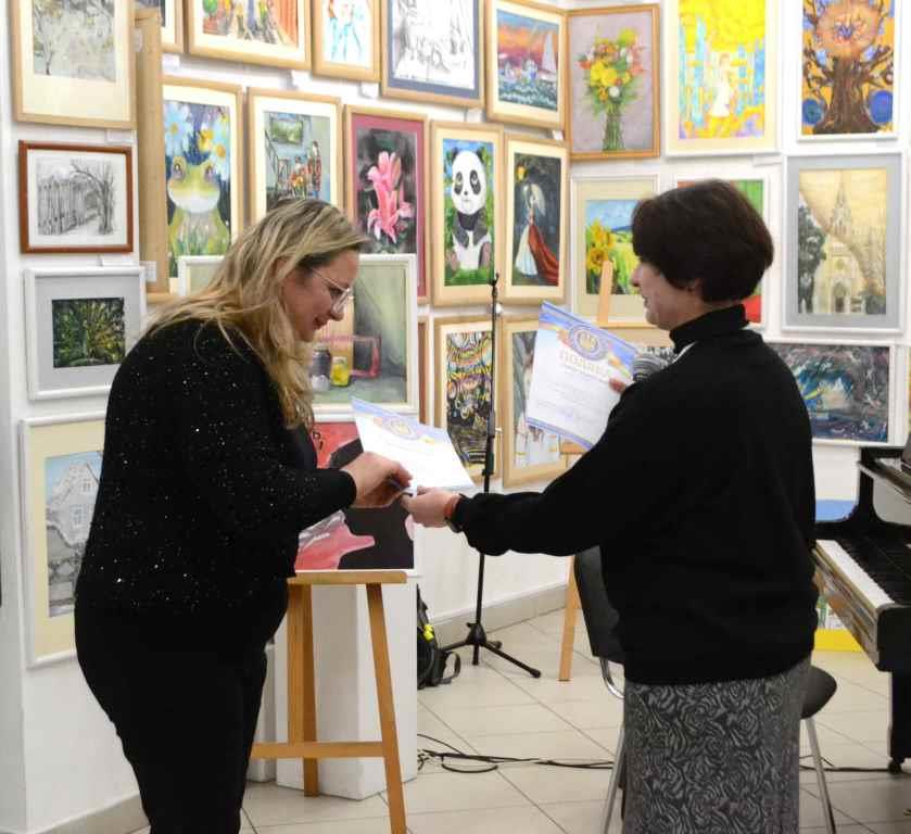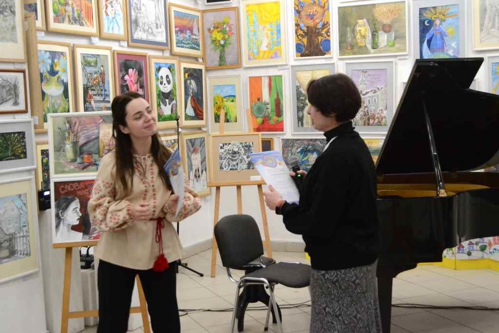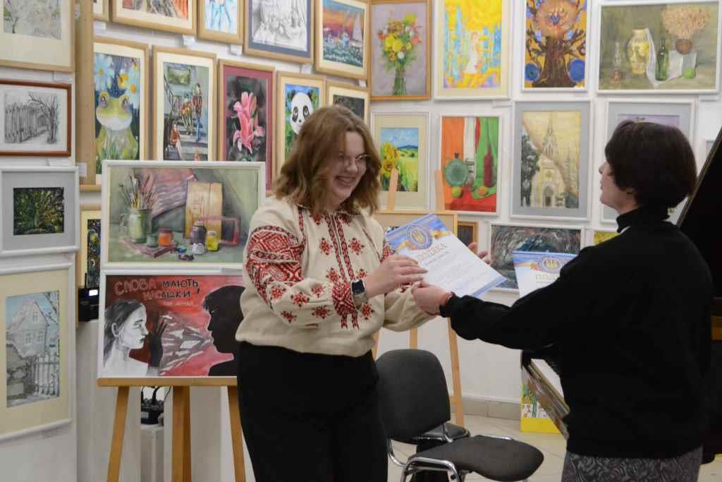 До привітань долучилися також представники Художньої школи імені Миколи Івасюка м. Чернівців: директорка Наталія Волошина, старший викладач, член НСХУ Владислав Готинчан, учениці Анастасія ЗеленькотаЄлізавєта Беженар.