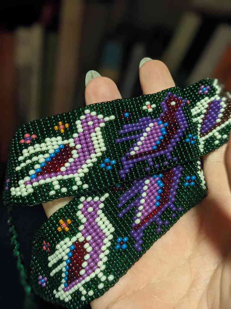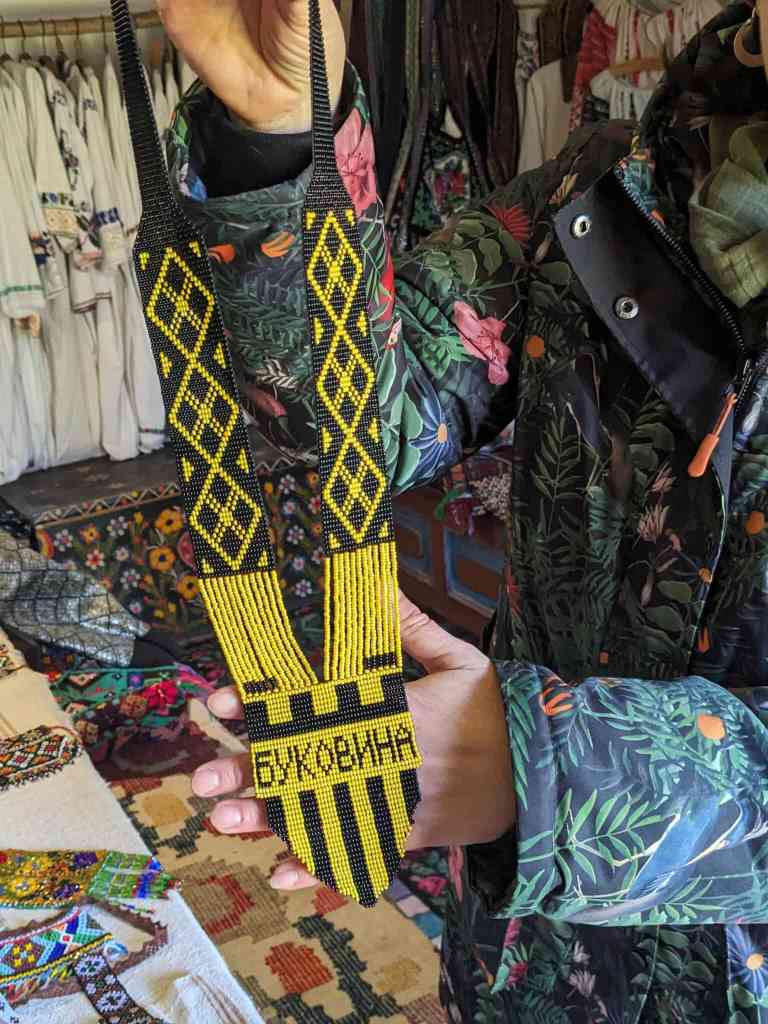 Один сучасний ґердан – ну дуже особливий. Він зі спортивною емблематикою, така собі рефлексія на шарф футбольного вболівальника. Цю прикрасу Наталія Машталір створила з любов’ю для чоловіка Андрія.