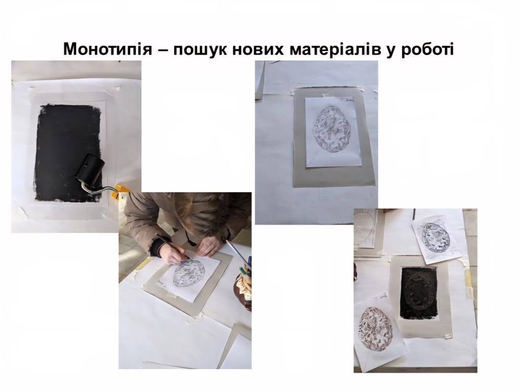 Свої методичні напрацювання на вебінарі презентували Зоряна Кіфуляк - викладачка КУ «Новоселицька художня школа» та Ельвіра Мазур - викладачка КЗ «Кельменецька художня школа». Методична доповідь Зоряни Кіфуляк була присвячена техніці монотипії та експериментальному пошуку нових матеріалів у роботі викладача мистецької школи. У доповіді викладачка ґрунтовно розкрила сутність техніки монотипії як унікального виду друкованої графіки, що поєднує елемент випадковості з авторським контролем. Авторка доповіді послідовно висвітлила етапи роботи над композицією, продемонструвала приклади завдань для своїх учнів, а також довела, що монотипія є ефективним інструментом розвитку образного та асоціативного мислення, фантазії та вміння імпровізувати, композиційного бачення, емоційної виразності роботи, впевненості у власному творчому рішенні.