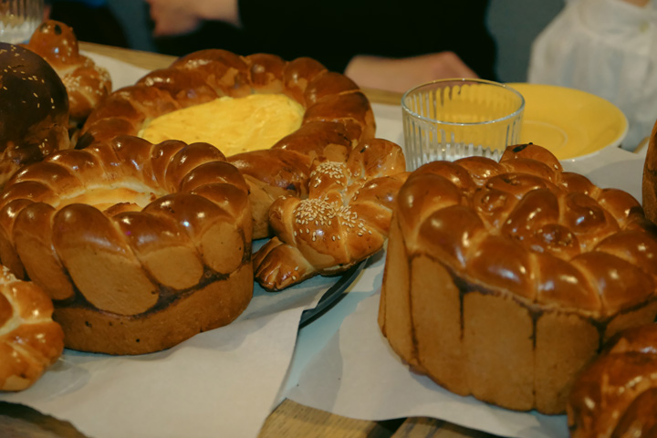 DSCF7122Дора, рогата паска, міщанська паска, старообрядницька, «паска на підлозі», мазурки, бабки з поливою і без, козонаки, кукуци — все це види великоднього обрядового хліба, які нещодавно були визнані нематеріальною культурною спадщиною України.