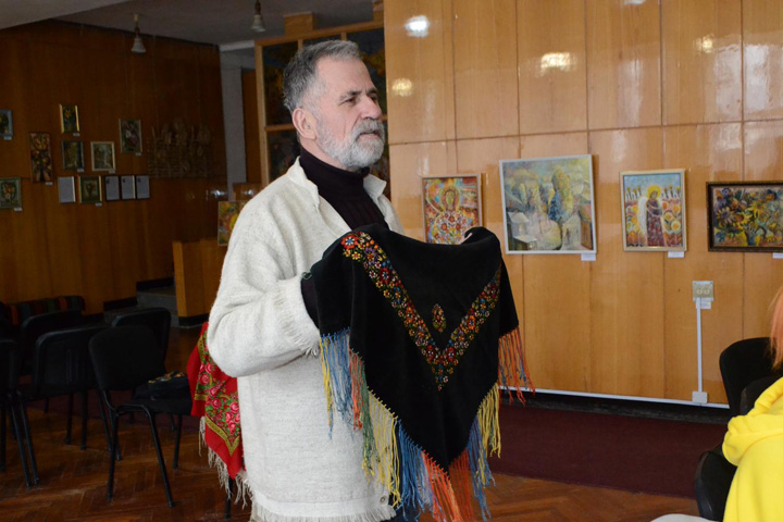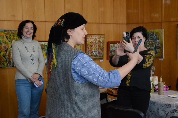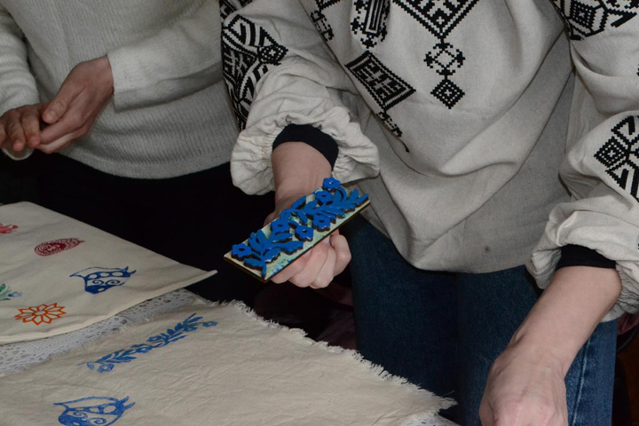 До заходу долучився директор Буковинського центру культури і мистецтва, заслужений діяч мистецтв України Микола Шкрібляк, який поділився цікавою історичною довідкою. Гості дізналися про різновиди українського народного ужиткового мистецтва та історію прикрашання тканини візерунками за допомогою дерев’яних штампів.