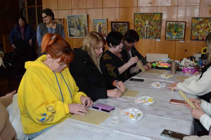 1500x0 28 квітня у Буковинському центрі культури і мистецтва відбувся майстер-клас із вибійки. Ініціаторкою передвеликодньої зустрічі виступила директорка Палацу молоді і студентів м. Херсона пані Олена Звягіна в межах меморандуму про співпрацю із Центром.