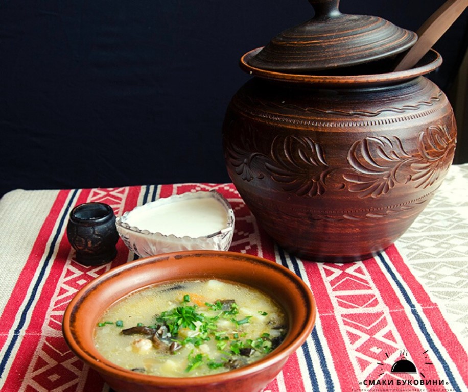 «Капусняк (капусник або капустянка) – це традиційна перша страва української кухні. Для нього квашену капусту можна приготувати самим, або ж купити готову. Самі ж Єрофєєви роблять квашену капусту з опеньками. Ребра порізати на порційні шматки, скласти на низ глиняного горщика чи іншого посуду, в якому готуватиметься капусняк. Зверху накрити їх капустою з грибами, дрібно покришеною однією цибулиною, почищеною і порізаною поздовж картоплею (на середні шматки). Пшоно добре промити і всипати зверху в горщик. Саме пшоно дасть страві особливий смак. Водою залити капусняк так, аби повністю вкрило страву. Ще одну цибулину, дрібно порізану, злегка підсмажити на олії, додати сметану, перегріти. Одержану суміш вилити в горщик. Витримати в духовці 1,2-1,5 години при температурі 180°С, або й на легшому вогні. У давнину капусняк готували в печі впродовж 2-3 годин, а то й цілу ніч витримували».
